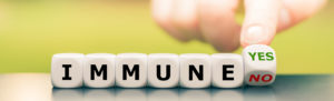 Corona immune? Hand turns dice and changes the expression “immun
